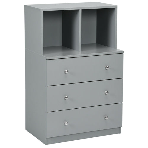 Gymax 3 Drawer Dresser With Cubbies Storage Chest for Bedroom Living Room Grey
