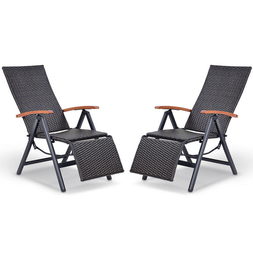 Gymax 2PCS Folding Patio Rattan Lounge Chair Outdoor Recliner with Aluminum Frame