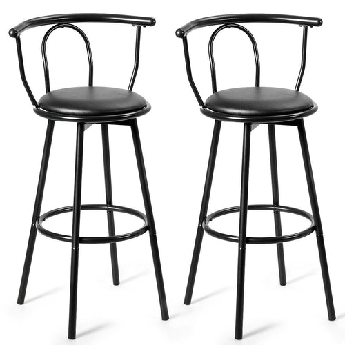 Gymax Set of 2 Bar Stools Counter Pub Chairs Swivel Seat Metal Frame with Footrest Black