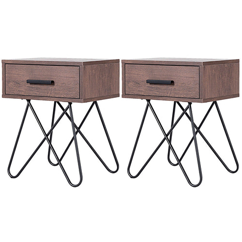 Gymax 2PC Nightstand Side End Coffee Table Storage Display Steel Hairpin Legs With Drawer