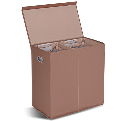 Gymax Double Laundry Hamper Storage Collapsible Basket Organizer Lid Mesh Bags