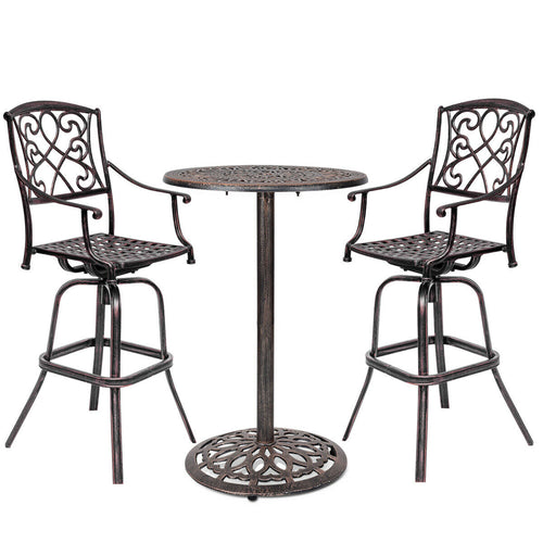 Gymax 3PCS Cast Aluminum Bistro Set 1 Round Bar Table & 2 Swivel Bar Stools Patio Pub
