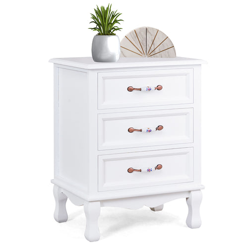Gymax 3 Drawers Nightstand Storage Wood End Table Side Bedside White