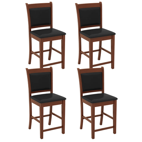 Gymax Upholstered Counter Stool Set of 4 w/ Solid Rubber Wood Frame Ergonomic Backrest