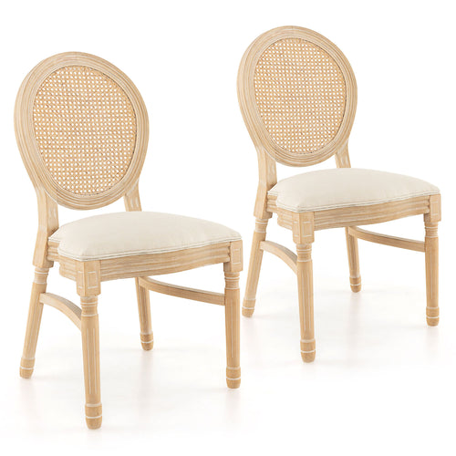 Gymax Dining Chairs Set of 2 French Style Kitchen Chair w/ Hand-Woven Rattan Backrest