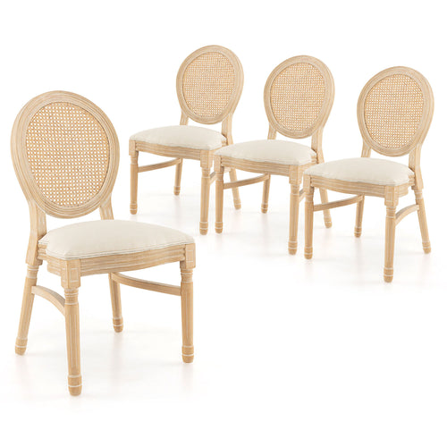 Gymax Dining Chairs Set of 4 French Style Kitchen Chair w/ Hand-Woven Rattan Backrest