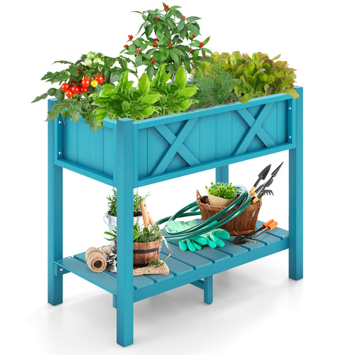 Gymax HIPS Raised Garden Bed Poly Wood Elevated Planter Box w/ Legs & Storage Shelf Blue