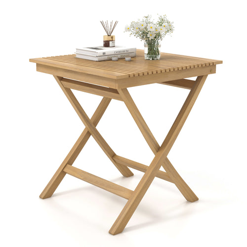 Gymax 27.5'' Bistro Table with Slatted Tabletop Sturdy Wood Frame & Thickened Top Patio