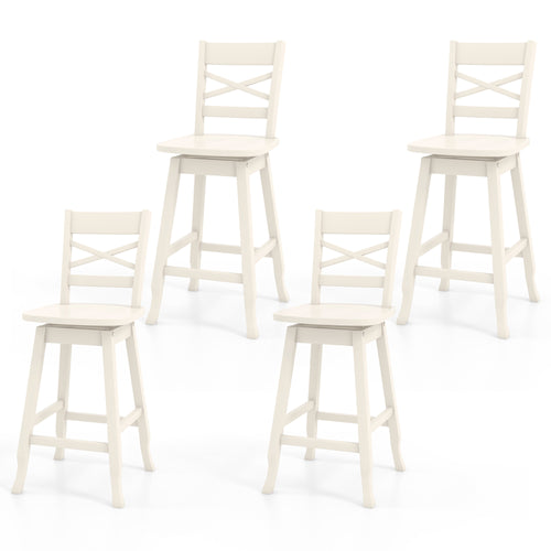 Gymax 4PCS 24'' Counter Height Stool Swivel Bar Stool Rubber Wood with Inclined Backrest
