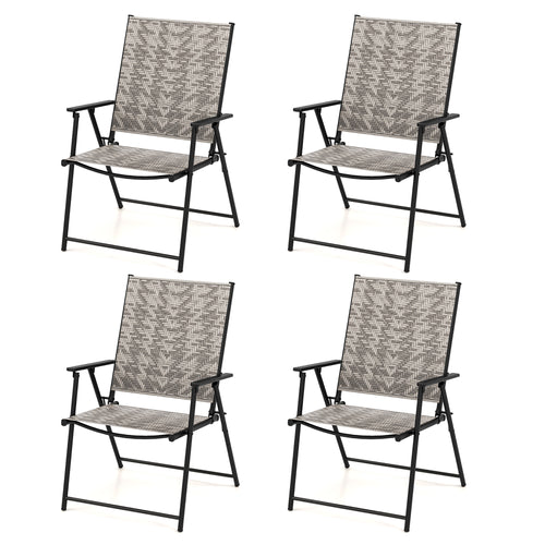 Gymax Set of 4 Folding Chairs with Armrests Metal Frame for Garden No Assembly Patio