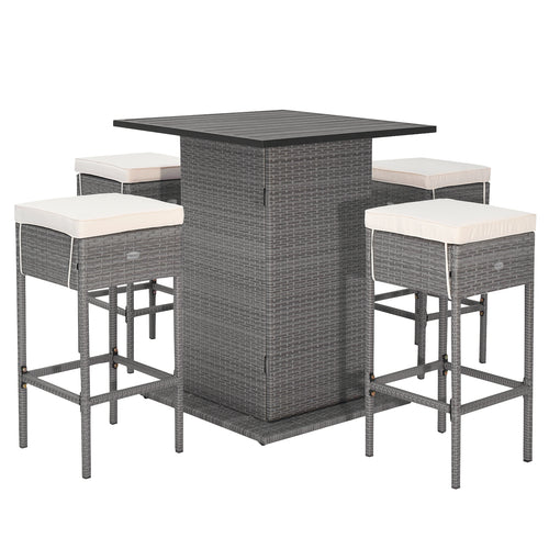 Gymax 5PCS Wicker Bar Table Set with Hidden Storage Shelves Bar Table Stools Patio