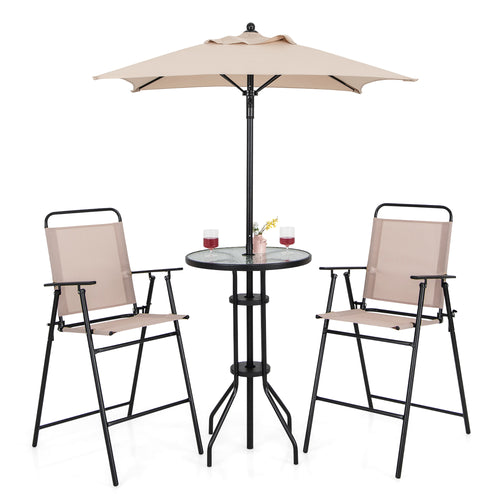 Gymax 4PCS Bistro Set Folding Counter Height Chairs Round Bar Table & Umbrella Patio