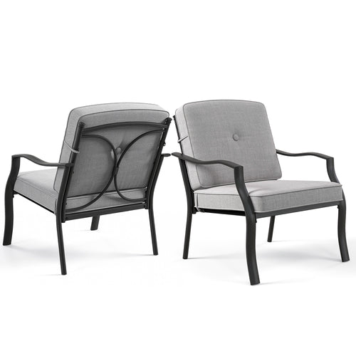 Gymax 2PCS Metal Chairs Outdoor Dining Seat Heavy Duty with Cushions Garden Patio Gray