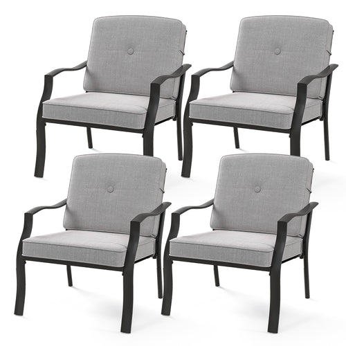 Gymax 4PCS Metal Chairs Outdoor Dining Seat Heavy Duty with Cushions Garden Patio Gray