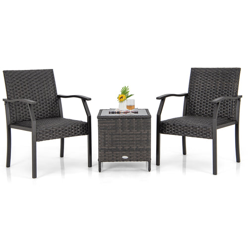 Gymax 3PCS Conversation Set Wicker Chair Tempered Glass Table Quick Dry Foam Patio