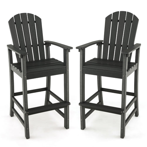 Gymax 2PCS HDPE Bar Height Stool Tall Chair Armrest Footrest All Weather Outdoor Patio
