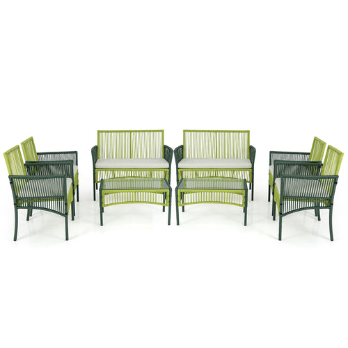 Gymax 8PCS Round Wicker Conversation Set With Cushions Tempered Glass Side Table Patio