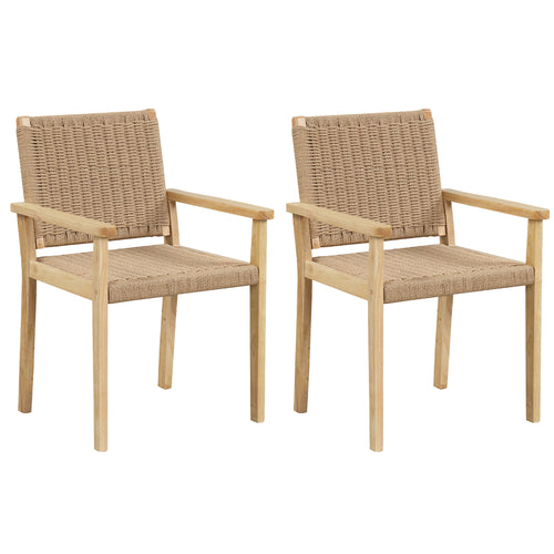 Gymax 2PCS Chair Rubber Wood Dining Armchairs Paper Rope Woven Seat Balcony Patio