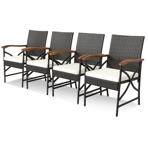 Gymax Set of 4 PE Wicker Dining Chairs with White Soft Zippered Cushions Armchairs Patio