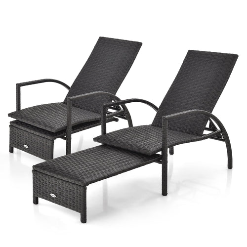 Gymax 2PCS Outdoor Chaise Lounge Rattan Recliner with Retractable Ottoman for Patio
