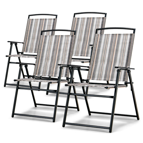 Gymax Set of 4 Folding Sling Chairs Portable chair with Dining Armrest Backrest Patio