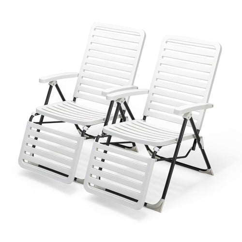 Gymax Set of 2 PP Chaise Lounge Folding Reclining Chair 7-Level Backrest Footrest Patio
