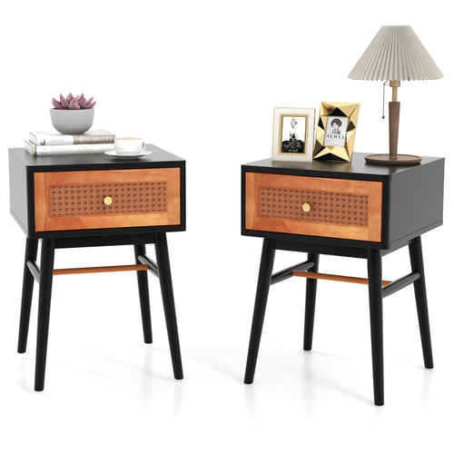 Gymax Set of 2 Nightstand Bedside End Table Solid Wood Legs Black