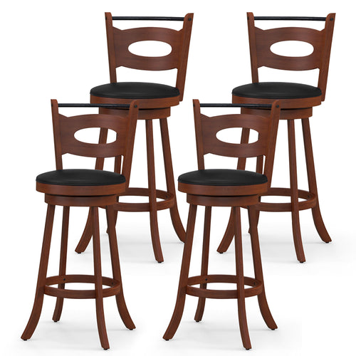 Gymax 4PCS 360¡ã Swivel Bar Stools Dining Chairs Solid Rubber Wood Leather Padded Brown & Black