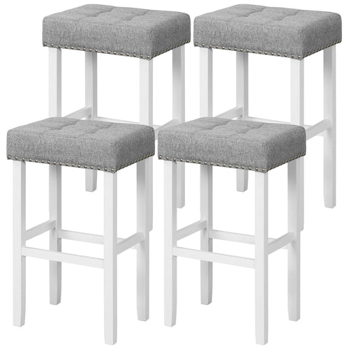 Gymax 4 PCS Tufted Upholstered Bar Stools Chairs with Rubber Wood Legs Gray & White