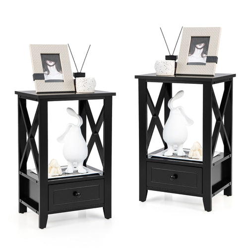 Gymax Set of 2 Nightstand with Bottom Drawer Side End Table Modern Black