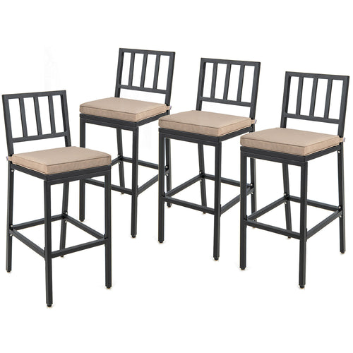 Gymax 4 PCS Outdoor Metal Bar Stools Bar Height Dining Chairs with Beige Cushion