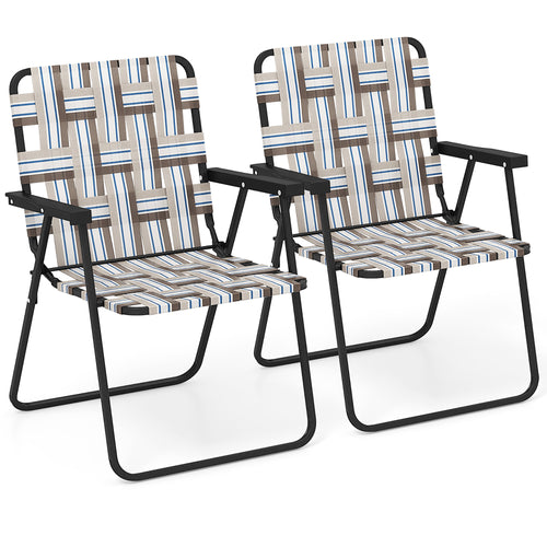 Gymax Folding Lawn Beach Chair Portable Sand Chair Set of 2 with Elegant Weaving Design Coffee