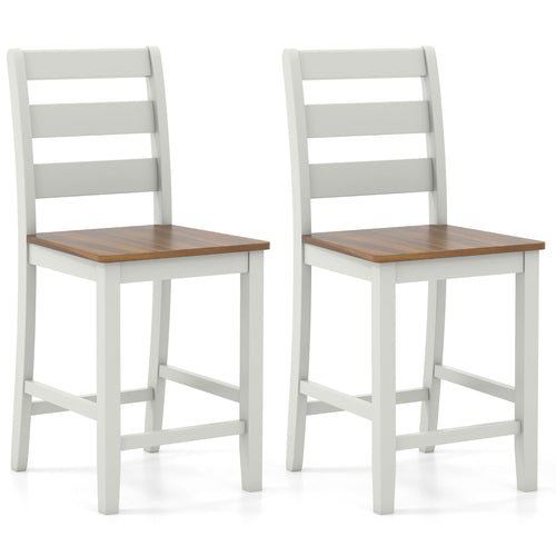 Gymax Set of 2 Counter Height Chairs with Inclined Backrest Rubber Wood Crossbars