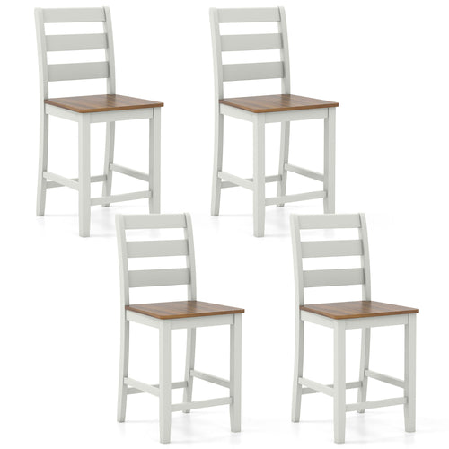 Gymax Set of 4 Counter Height Chairs with Inclined Backrest Rubber Wood Crossbars