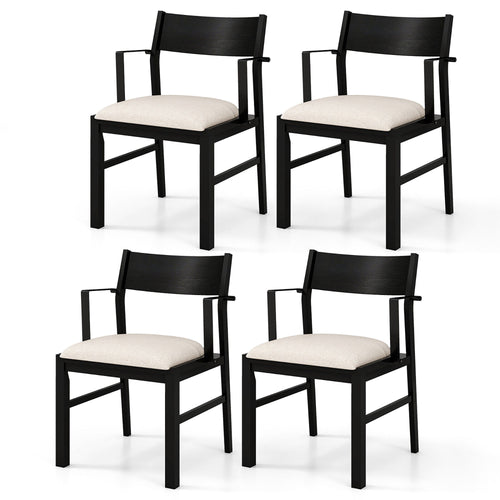 Gymax Dining Chair with Arms Set of 4 Modern Kitchen Chairs with Contoured Backrest Black & Cream
