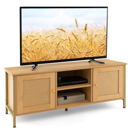Gymax Boho TV Stand for TV up to 55'' with Faux Rattan Door Side Cabinet & Open Shelf