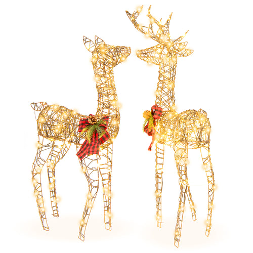 Gymax 3-Piece Reindeer Family Set with LED Lights Christmas Deer Weather-resistant Outdoor Indoor