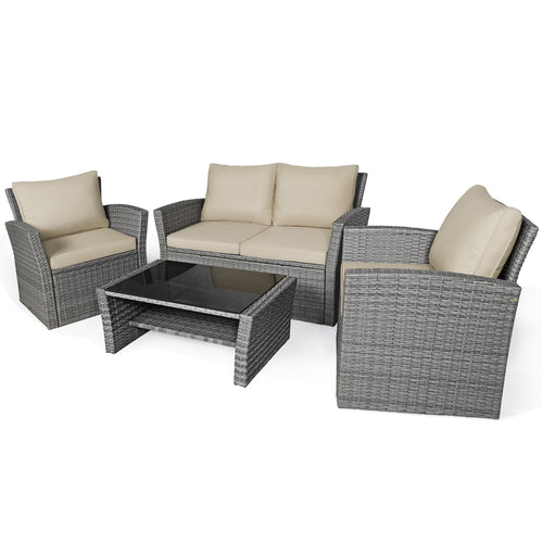 Gymax 4PCS Patio Rattan Conversation Set Outdoor Furniture Set w/ Khaki Cushions