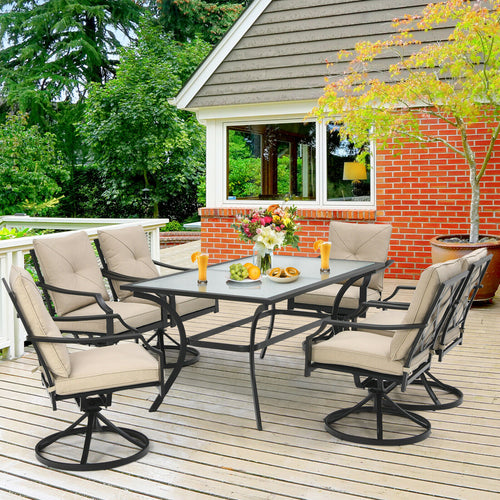 Gymax 7PCS Cushioned Outdoor Dining Set Patio Furniture Set w/ Swivel Chairs