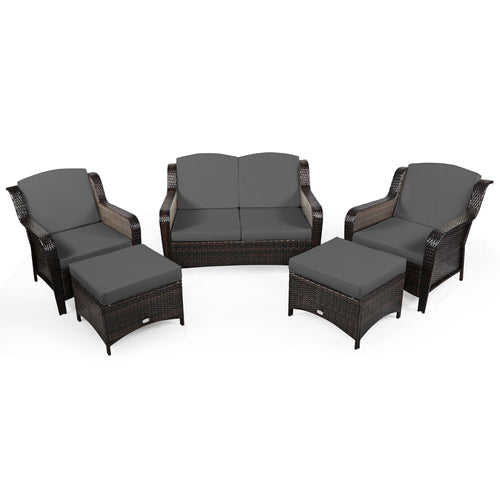 Gymax 5PCS Rattan Patio Conversation Sofa Furniture Set Outdoor w/ Grey Cushions