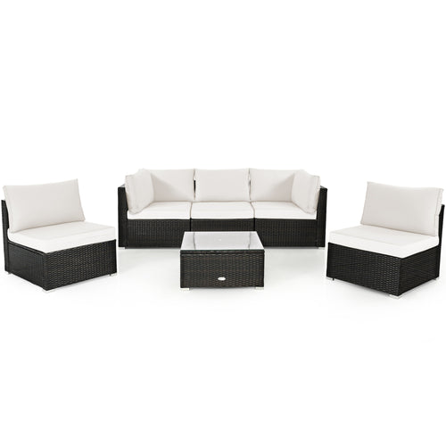 Gymax 6PCS Rattan Outdoor Sectional Sofa Set Patio Furniture Set w/ White Cushions