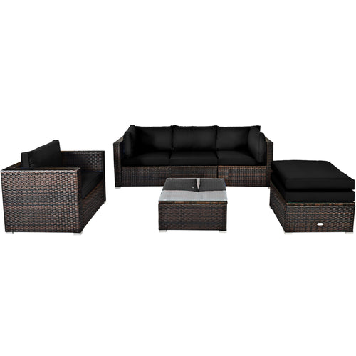 Gymax 6PCS Patio Conversation Set Rattan Sectional Furniture Set w/ Black Cushions
