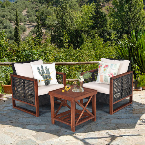 Gymax 3PCS Rattan Wicker Patio Conversation Set Outdoor Furniture Set w/ Cushion
