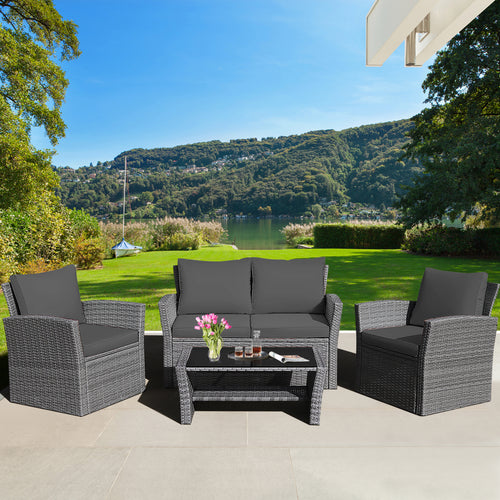 Gymax 4PCS Patio Rattan Conversation Set Outdoor Furniture Set w/ Grey Cushions