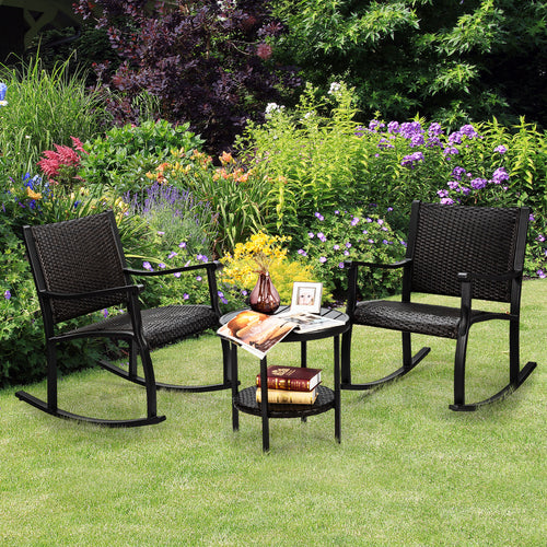 Gymax 3PCS Rattan Rocking Bistro Set Patio Conversation Set Patio Yard Outdoor