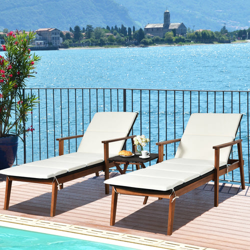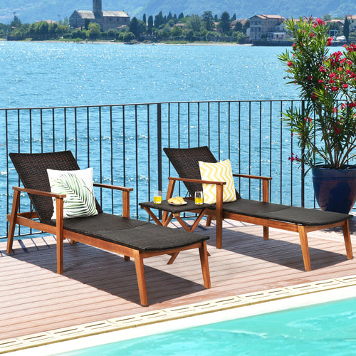 Gymax 3PCS Outdoor Chaise Lounge Set Patio Yard w/ Side Table Adjustable Backrest