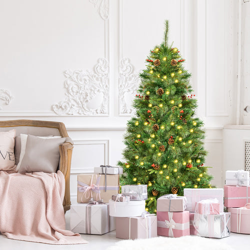 Gymax 5 ft Pre-lit Pencil Christmas Tree Hinged Fir Tree Holiday Decor w/ LED Lights