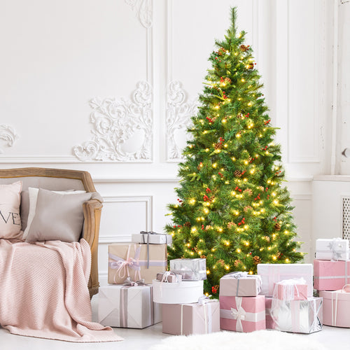 Gymax 7 ft Pre-lit Hinged Christmas Tree Holiday Decor w/ LED Lights Metal Stand