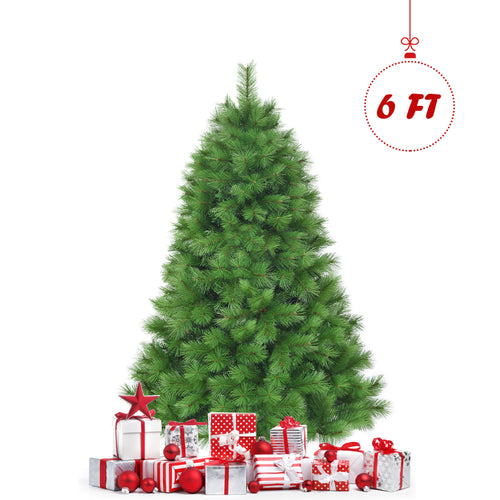 Gymax 6Ft Christmas Tree Artificial Hinged Tree w/ Metal Stand 586 Branch Tips