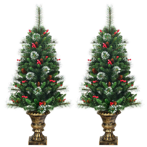 Gymax 2PCS 4FT Pathway Christmas Tree Artificial Xmas Tree w/ Red Berries Pine Cones